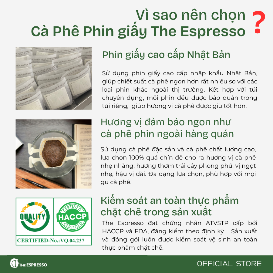Phin giấy cao cấp nhập khẩu Nhật Bản, giúp chiết suất cà phê ngon hơn rất nhiều so với các loại phin khác ngoài thị trường. Được bảo quản bằng hộp và túi chuyên dụng đảm bảo cà phê giữ chất lượng kéo dài, hương thơm và vị giữ được tốt hơn.
